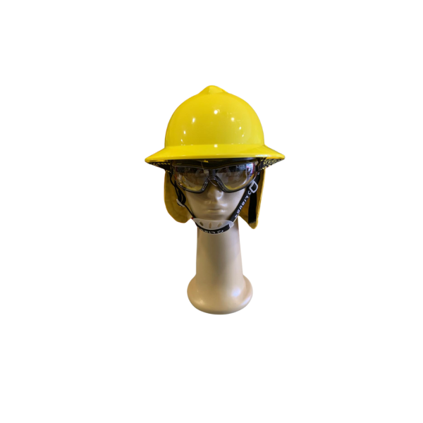 Casco para incendios forestales, certificado IRAM, incluye cubrenuca, antiparra Steelpro antiempañante y sistema de ajuste por rueda, con ala ancha para mayor protección del sol.