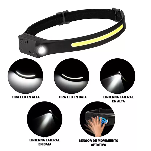 Linterna frontal recargable por USB con sensor de movimiento y 230 grados de iluminación